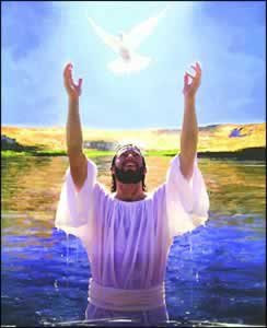 "Tout le peuple se faisait baptiser, Jésus fut aussi baptisé ; et, pendant qu'il priait, le ciel s'ouvrit, et l'Esprit saint descendit sur lui sous une forme corporelle, comme une colombe. Et une voix fit entendre du ciel ces paroles : Tu es mon Fils bien-aimé ; en toi j'ai mis toute mon affection." Luc3:21-22